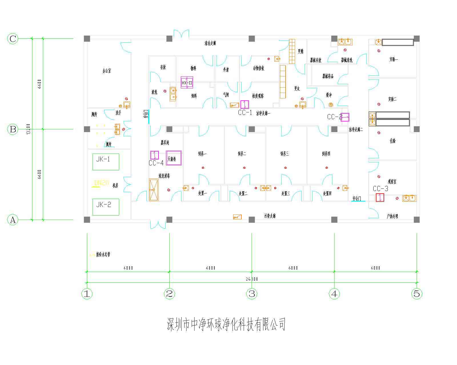 強(qiáng)電系統(tǒng):電氣控制柜、潔凈室專用燈具、動物照明、開關(guān)插座、紫外線殺菌燈、電纜電線、配管線槽等設(shè)備、材料。